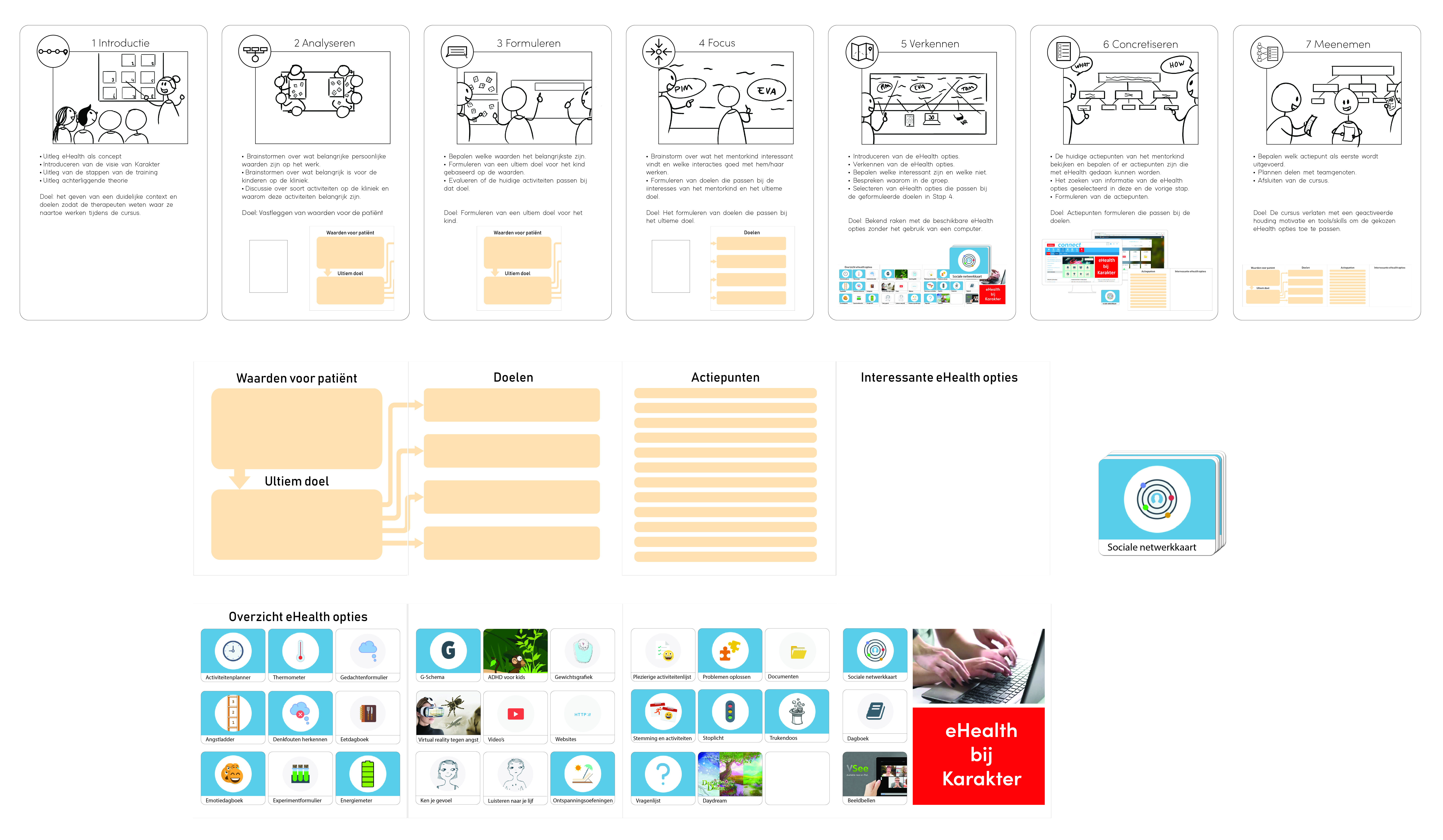 This project was done for and in cooperation with Karakter Kinder- en Jeugdpsychiatrie, a psychiatric hospital for children. The aim was to give Karakter knowledge and tools to improve the experience of the therapists during the implementation of Jouw Omgeving, a digital environment that allows patient, parent and therapists to communicate about the therapy process. However, the digital environment is not used much by the therapists and thus not by patients and parent either. Qualitative research was conducted with the therapists in order to find out what parts of the implementation could be improved and how the therapists could become intrinsically motivated to use JO. Based on the insight a training was designed that focused on connecting eHealth to personal values and on gaining skills and knowledge to be able to use Jouw Omgeving. The steps of the training were evaluated with the therapists, which led to some changes in the activities of the training.