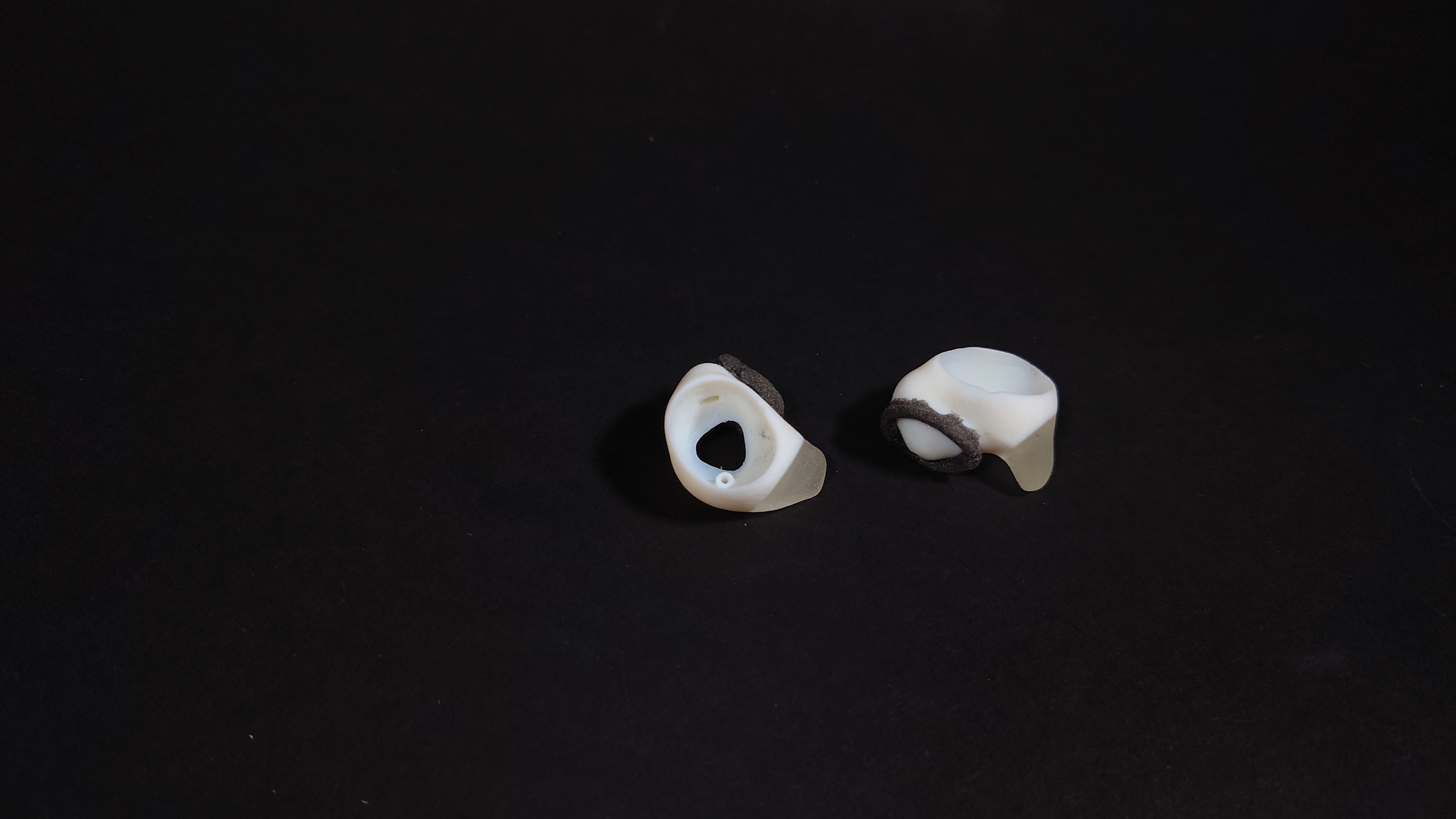 The concept Seal is based on the Truedepth scan data of the concha. Seal distributes the retention force across the concha, rather than providing retention in the auditory canal. The part that fits in the cymba concha is made of flexible material, providing a softer touch and therefore more comfort. The seal creates a sealing effect at the entrance of the auditor canal using a flexible collar. Therefore, it does not need to enter the auditory canal which means that its audio canal can remain short. The advantage of this is that the seal fabricates as little extra geometry as possible.