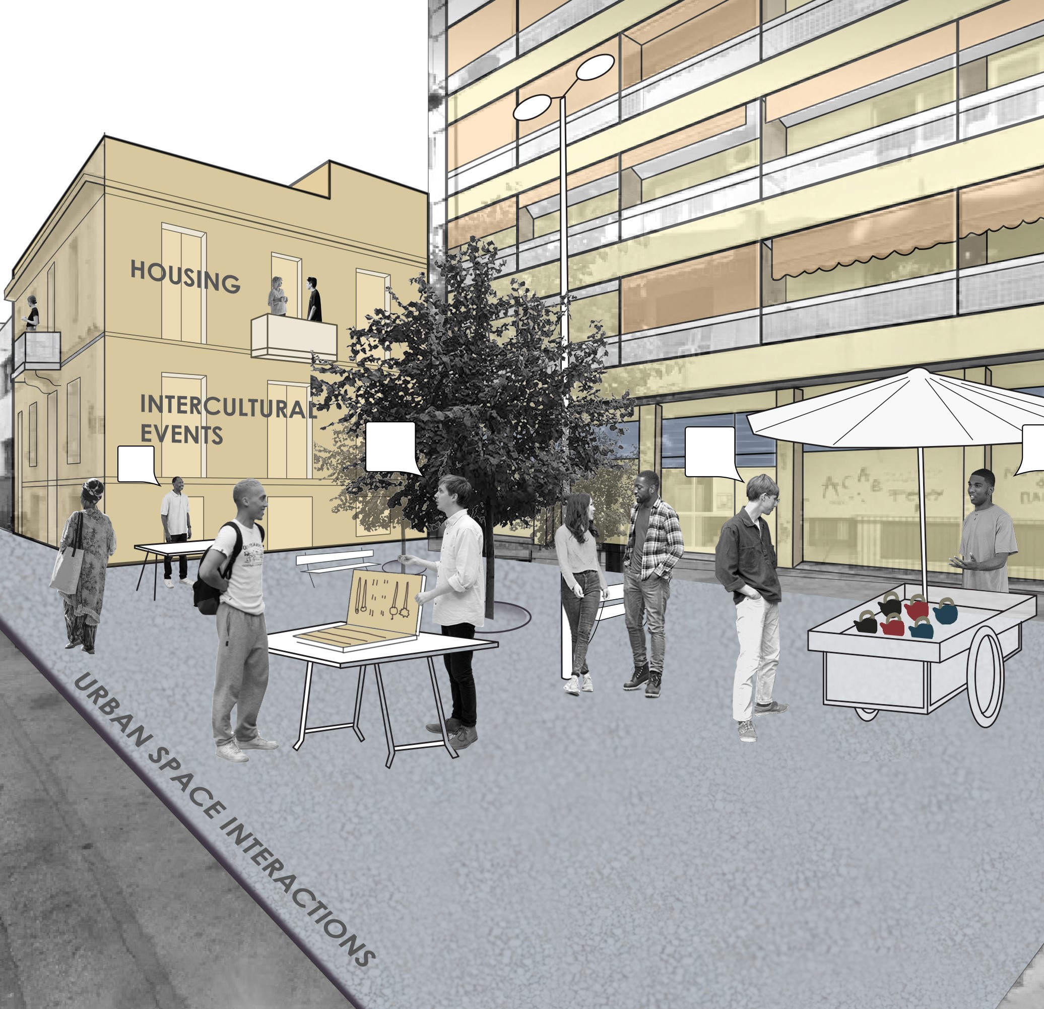 This research-and-design research addresses the influence of urban conditions on social conditions (and vice versa) and explores interdisciplinary alternatives. In the context of Athens (Greece), spatial planning and its governance support social exclusion of migrants, which is expressed through conflicts with native residents. The project experiments with alleviating these effects by establishing spatial planning as active agent of integration. The main aim of the research is to develop an appropriate strategy in areas with migrants, by re-adjusting the principles of urban space. Instead of providing one fixed solution, the project will design flexible initiatives that help the community achieve the desirable outcome. The methodology of this urban integration can be replicable, provided that it is adjusted for similar urban and social contexts.
