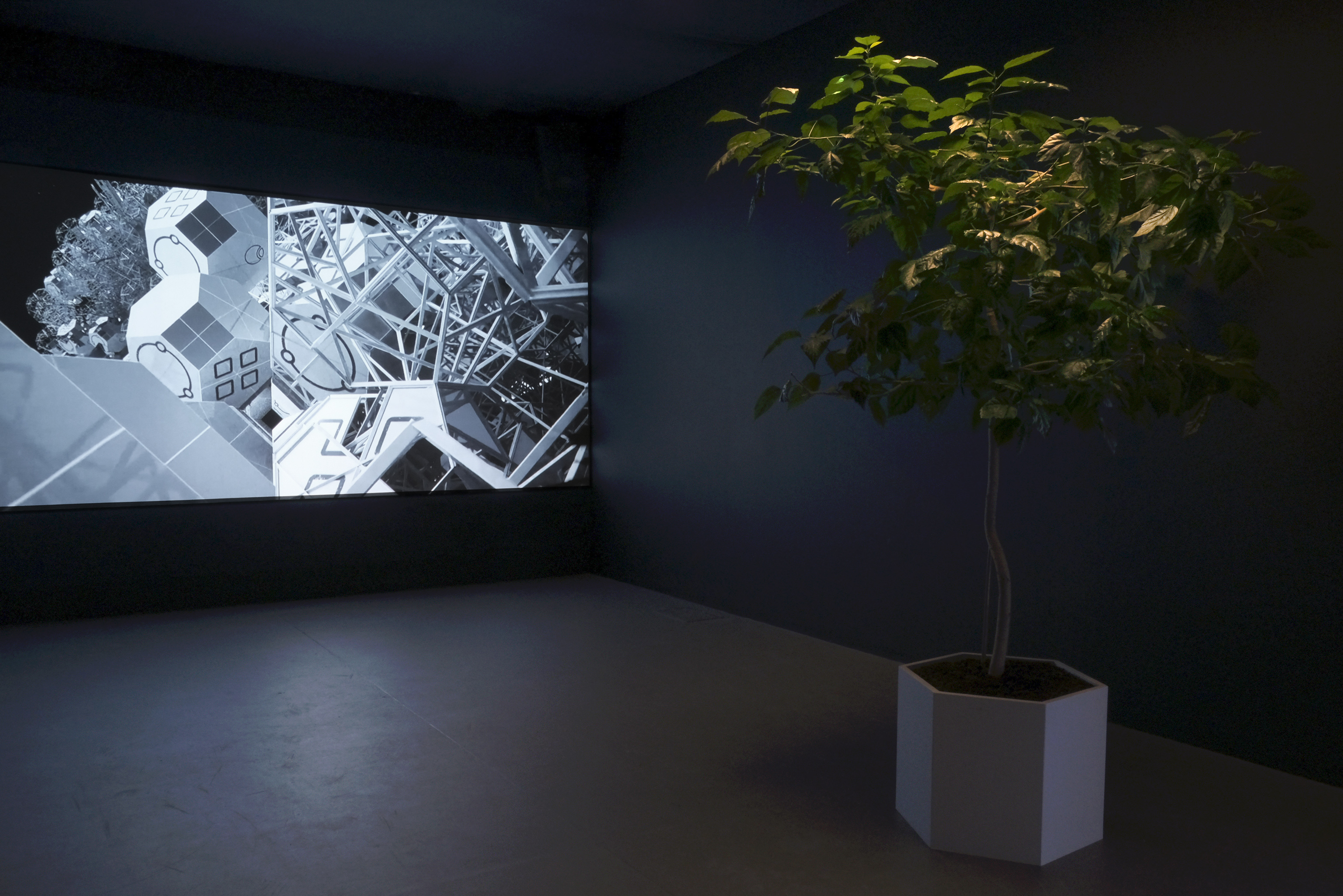 DSTART (TU Delft Starship Team) is a multidisciplinary team of engineers, scientists, architects and artists developing next-generation concepts for interstellar exploration. DSTART aims to critically explore ideologies underpinning space exploration paradigms, and tries to propose alternative concepts. The installation in Vita Kuben was created by Nils Faber, Anton Dobrevski, Amélie Kim, Joris Putteneers, Sharon van Rijthoven, Angelo Vermeulen, Arise Wan and Jasper Wennekendonk. The hostile and unpredictable environment of deep space requires a new conceptual approach for interstellar flight, one that differs radically from any current design in aerospace. Using biology as inspiration, E|A|S suggests creating starships that physically grow and evolve during their journey. Resources extracted through asteroid mining are used to 3D print new components of the ship in an almost endless process of adaptation. The DSTART team is currently developing concept studies and computer simulations to test these ideas. The art installation is a combination of a large-scale animated video, a composition of monitors with moving and still images, and a living plant sculpture. The animations and still images are visual studies of the E|A|S project.