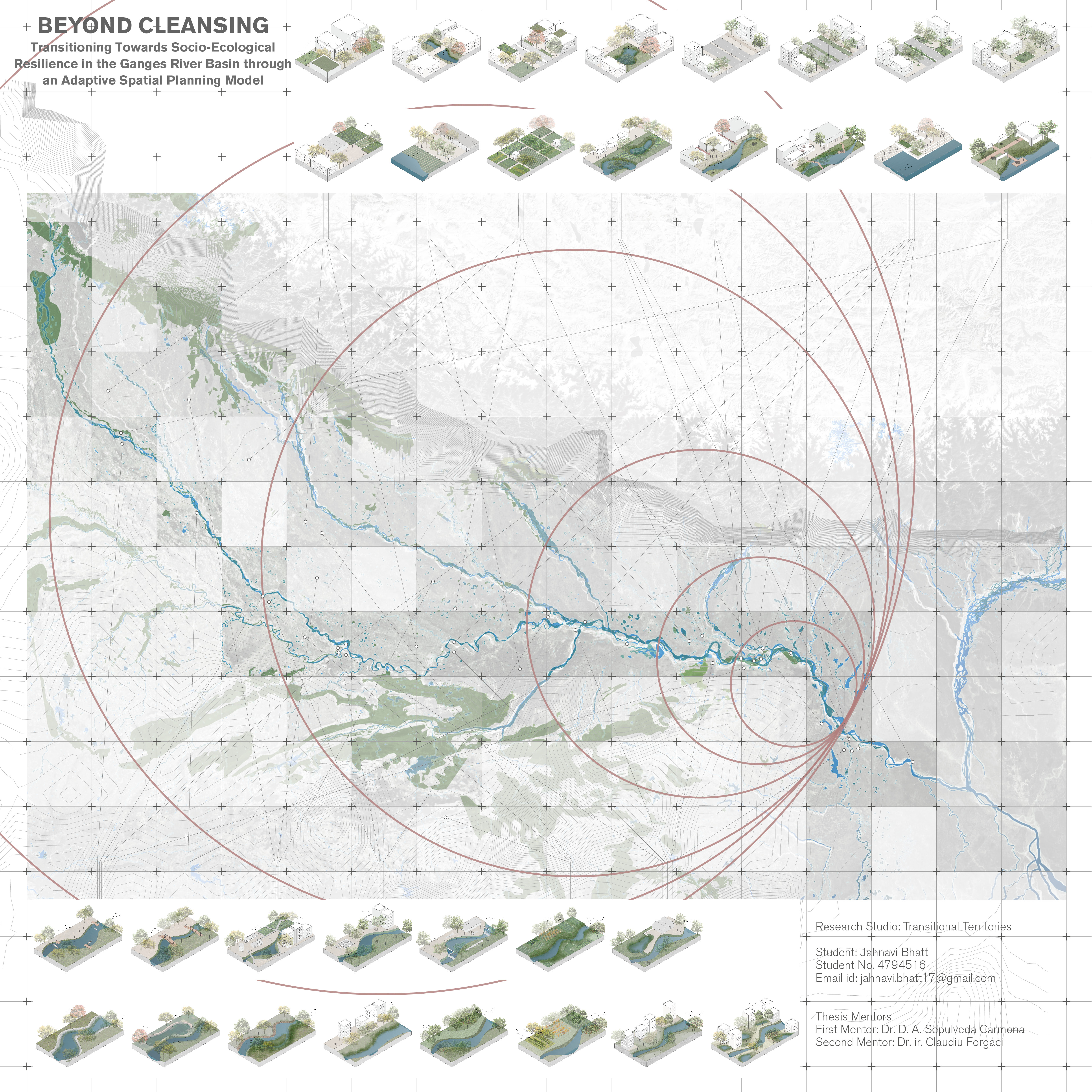 The approach to planning water centric projects has not been a holistic approach in the past, and with uncertainties of changing times the planning approach needs to be more adaptive. The aim of the project is to relook at the current development trend within the existing system and derive a possible adaptive spatial planning model for design, that would include local communities and governing bodies into the planning process. The focus lies in emphasising the importance of a holistic approach to planning for the Ganges River Basin and bridging the gap between the national mitigation policies and local adaptation to climate change, to alleviate social, economic and ecological vulnerabilities.