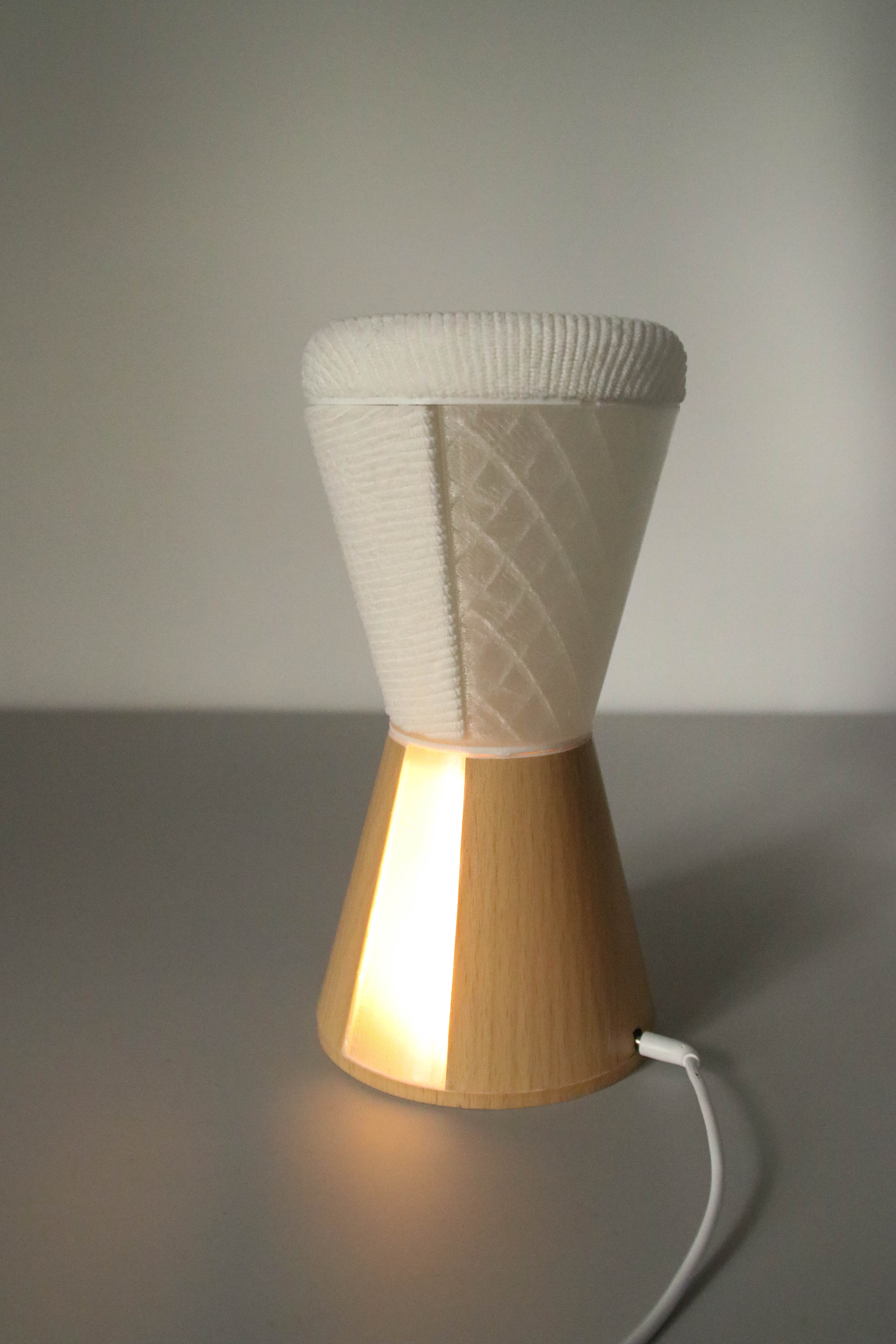 A novel product concept for Philips Hue was created. A prototype of the concept was made to demonstrate textile building blocks in the context of a luminaire. This product concept is called the “Rotation Lamp” and it is used as a tool throughout the report for experimenting and validating. The Rotation Lamp is inviting to touch because of its textile parts. It is intended to be kept close to the user and to enhance their well-being by providing them with a lamp that suits their need for ambience and functional light. Three sets of textile housings were created for the prototype to observe the different product aesthetics that these could create.