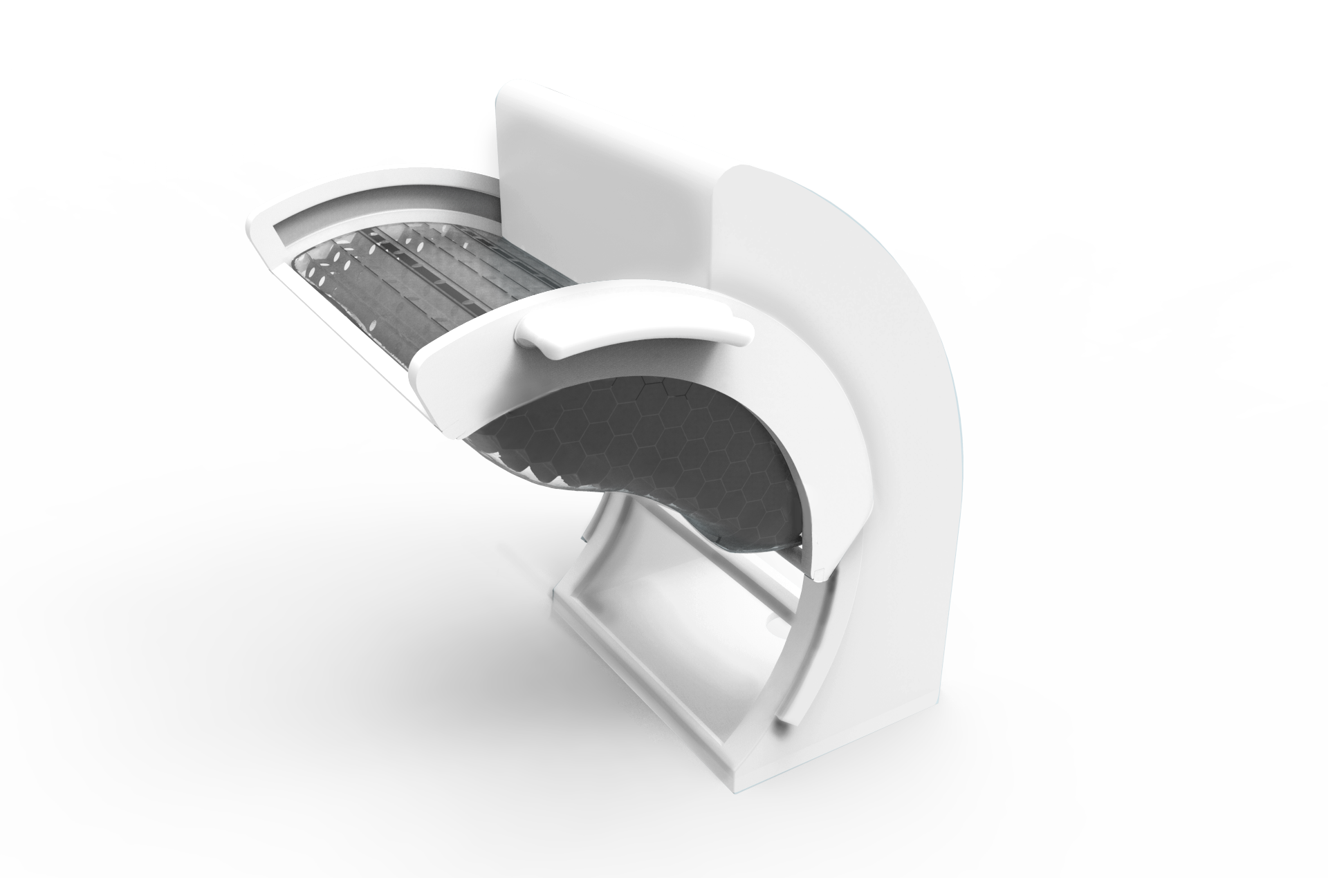 For an optimal ergonomic fit of the water bolus, a 4D anthropometric model of head and neck was developed based on the 3D images of head and neck cancer patients that are treated at the Erasmus MC. Additionally, to secure appropriate cooling and pressure a honeycomb grid was developed. The pattern of the cavities in the grid guides circulating water through the entire volume to uniformly cool the skin. Furthermore, the grid itself provides shape stability to the water bolus, whereas the sides of the grid that are in contact with the patient’s skin provide flexibility. In addition, the water bolus was designed in a manner to enable an easy attachment to the deep DHT equipment by a sliding mechanism.